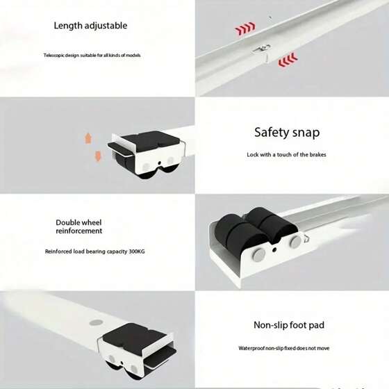 📏 Rolele sunt complet reglabile, potrivindu-se perfect la lățimea și adâncimea aparatelor precum mașina de spălat, uscătorul sau frigiderul.